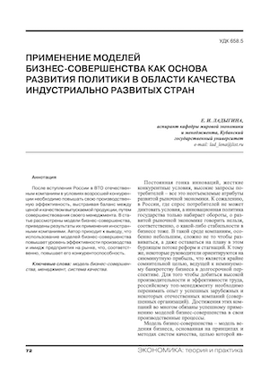 Применение моделей бизнес-совершенства как основа развития политики в области качества индустриально развитых стран