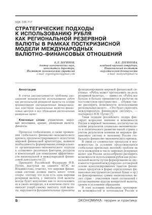 Стратегические подходы к использованию рубля как региональной резервной валюты в рамках посткризисной модели международных валютно-финансовых отношений