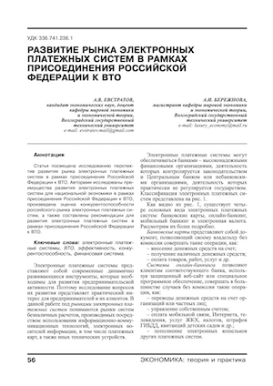 Развитие рынка электронных платежных систем в рамках присоединения Российской Федерации к ВТО