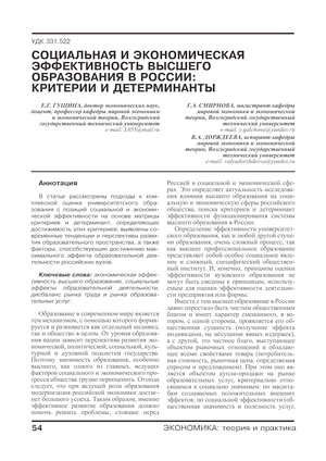 Социальная и экономическая эффективность высшего образования в России: критерии и детерминанты
