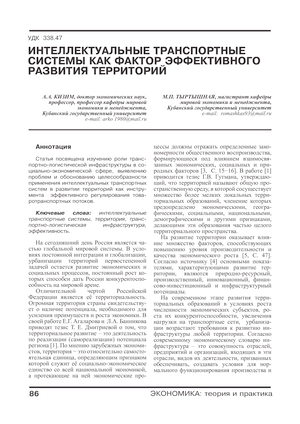 Интеллектуальные транспортные системы как фактор эффективного развития территорий