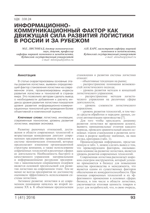 Информационно-коммуникационный фактор как движущая сила развития логистики в России и за рубежом