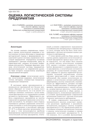 Оценка логистической системы предприятия