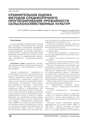 Сравнительная оценка методов среднесрочного прогнозирования урожайности сельскохозяйственных культур