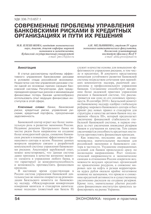 Современные проблемы управления банковскими рисками в кредитных организациях и пути их решения