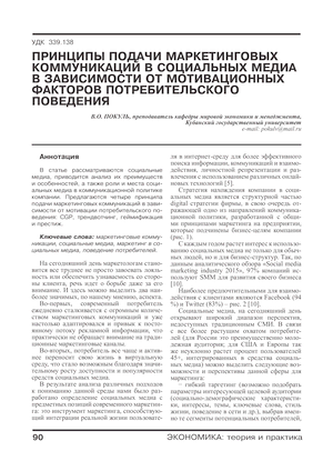 Принципы подачи маркетинговых коммуникаций в социальных медиа в зависимости от мотивационных факторов потребительского поведения