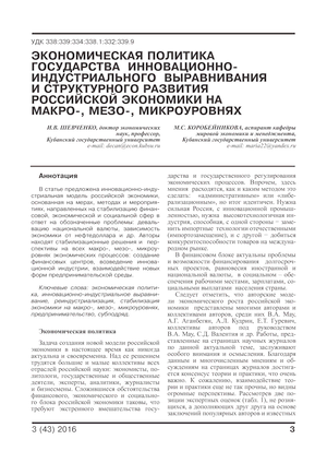 Экономическая политика государства инновационно-индустриального выравнивания и структурного развития российской экономики на макро-, мезо-, микроуровнях