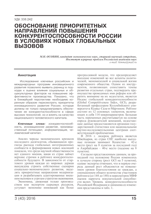 Обоснование приоритетных направлений повышения конкурентоспособности России в условиях новых глобальных вызовов