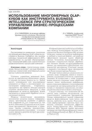Использование многомерных OLAP-кубов как инструмента Business Intelligence при стратегическом управлении бизнес-процессами компании