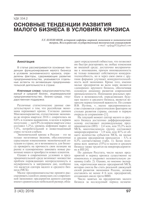 Основные тенденции развития малого бизнеса в условиях кризиса