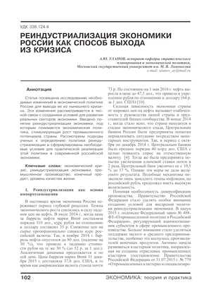 Реиндустриализация экономики России как способ выхода из кризиса