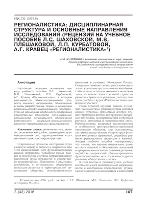 Регионалистика: дисциплинарная структура и основные направления исследования (рецензия на учебное пособие Л. С. Шаховской, М. В. Плешаковой, Л. П. Курбатовой, А. Г. Кравец «Регионалистика»)