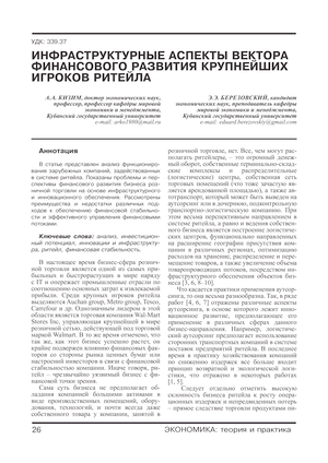 Инфраструктурные аспекты вектора финансового развития крупнейших игроков ритейла