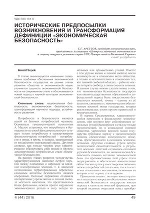 Исторические предпосылки возникновения и трансформация дефиниции «Экономическая безопасность»