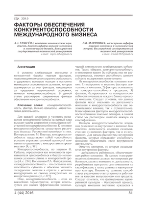 - Хрысёва А.А. Факторы обеспечения конкурентоспособности международного бизнеса российских компаний в условиях кризиса // Известия ВолГТУ. 2016. № 7 (186). С. 29–32.