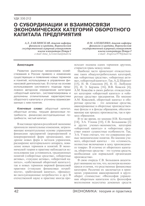 О субординации и взаимосвязи экономических категорий оборотного капитала предприятия