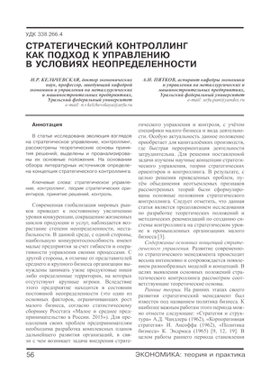 Стратегический контроллинг как подход к управлению в условиях неопределенности