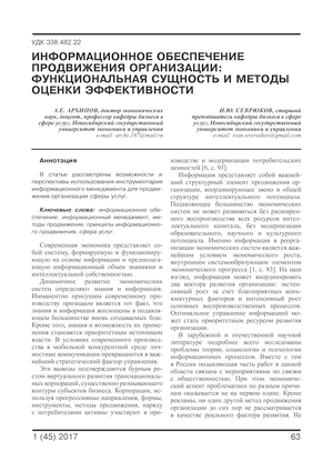 Информационное обеспечение продвижения организации: функциональная сущность и методы оценки эффективности