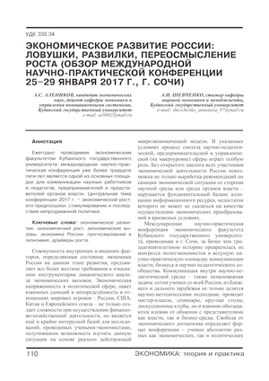 Экономическое развитие России: ловушки, развилки, переосмысление роста (обзор международной научно-практической конференции 25–29 января 2017 г., г. Сочи)