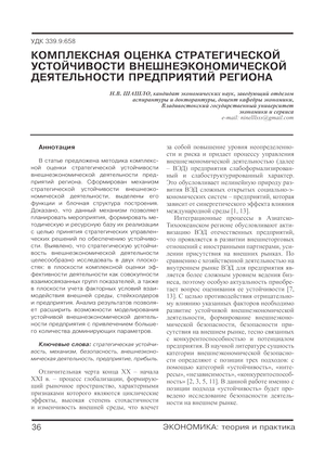Комплексная оценка стратегической устойчивости внешнеэкономической деятельности предприятий региона