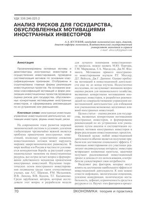 Анализ рисков для государства, обусловленных мотивациями иностранных инвесторов