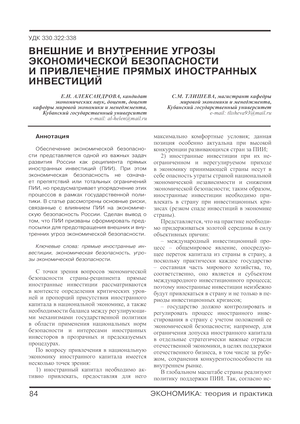 Внешние и внутренние угрозы экономической безопасности и привлечение прямых иностранных инвестиций