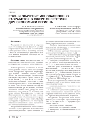Роль и значение инновационных разработок в сфере энергетики для экономики региона