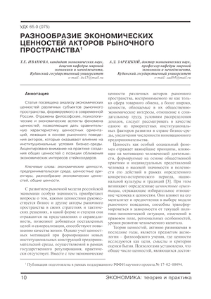 Разнообразие экономических ценностей акторов рыночного пространства