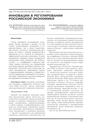 Инновации в регулировании российской экономики