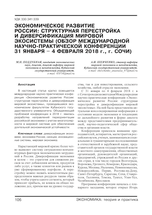 Экономическое развитие России: структурная перестройка и диверсификация мировой экосистемы (обзор международной научно-практической конференции 31 января – 4 февраля 2018 г., г. Сочи)