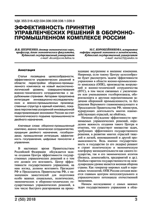 Эффективность принятия управленческих решений в оборонно-промышленном комплексе России