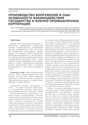 Производство вооружений в США: особенности взаимодействия государства и военно-промышленных корпораций