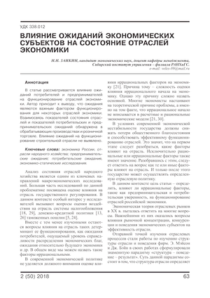 Влияние ожиданий экономических субъектов на состояние отраслей экономики