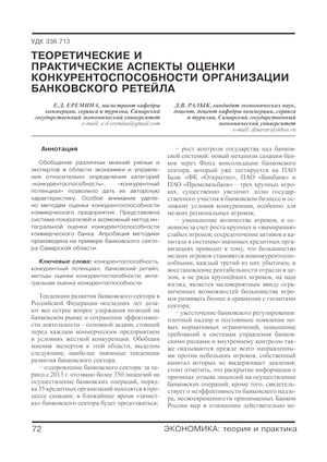 Теоретические и практические аспекты оценки конкурентоспособности организации банковского ретейла