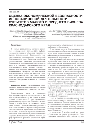 экономическая безопасность, инновационная деятельность, малый бизнес, средний бизнес, Краснодарский край