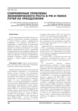 Современные проблемы экономического роста в РФ и поиск путей их преодоления