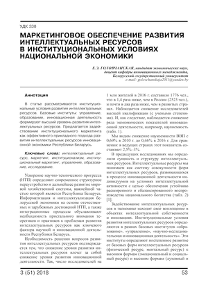 Маркетинговое обеспечение развития интеллектуальных ресурсов в институциональных условиях национальной экономики