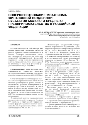 Совершенствование механизма финансовой поддержки субъектов малого и среднего предпринимательства в Российской Федерации