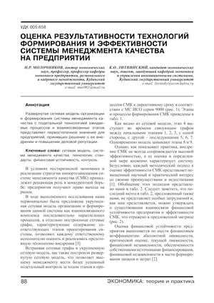 сетевая модель, система менеджмента качества, технология, стандарты, финансовая устойчивость, контроль