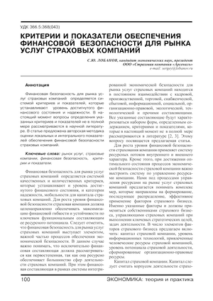 рынок услуг, страховые компании, финансовая безопасность, критерии и показатели