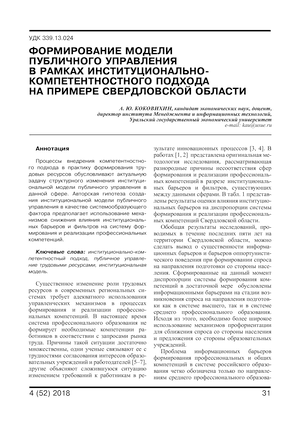 Формирование модели публичного управления в рамках институционально-компетентностного подхода на примере Свердловской области