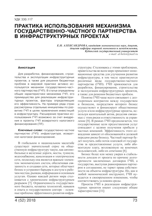 Практика использования механизма государственно-частного партнерства в инфраструктурных проектах