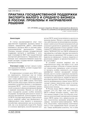 Практика государственной поддержки экспорта малого и среднего бизнеса в России: проблемы и направления решений