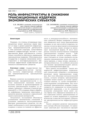 Роль инфраструктуры в снижении трансакционных издержек экономических субъектов