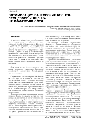 Оптимизация банковских бизнес-процессов и оценка их эффективности