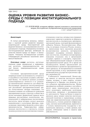 Оценка уровня развития бизнес-среды с позиции институционального подхода