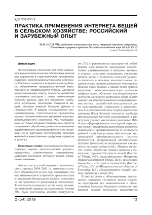 Практика применения интернета вещей в сельском хозяйстве: российский и зарубежный опыт