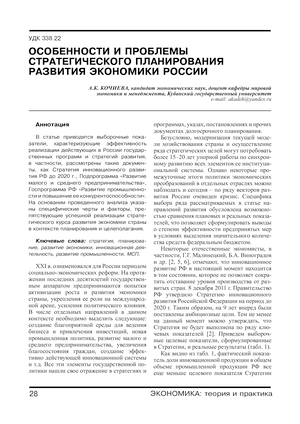 Особенности и проблемы стратегического планирования развития экономики России