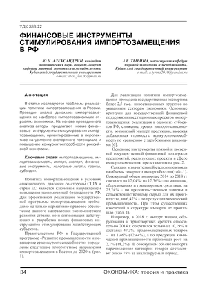 Финансовые инструменты стимулирования импортозамещения в РФ