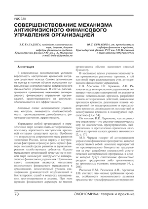 антикризисное управление, контроль, ликвидность, платежеспособность, прогнозирование, рентабельность, финансовое состояние, эффективность